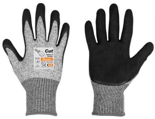 Pletené rukavice z polyetylénu a spandexu s nylonovým a skleneným vláknom - Stitch 13. Potiahnutá pieskovou nitrilovou vrstvou Výhody ochranných rukavíc CUT COVER 4 proti porezaniu : - predĺžená manžeta pre extra ochranu - mikroporézny nitrilový povlak na dlani rukavice odolný proti oderu - extrémne ľahké a priedušné , poskytujú najvyšší komfort a úroveň hmatovej citlivosti