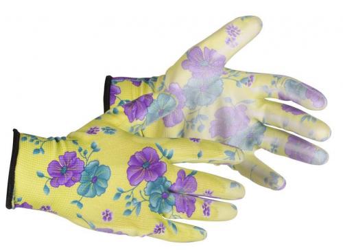 POPIS: - Rukavice zhotovené z bieleho a cierneho nylonového úpletu bez švov. - Dlan a prsty potiahnuté tenkou vrstvou bieleho, resp. cierneho polyuretánu. - Pružný úplet na zápästí. POUŽITIE: - Rukavice sú urcené k ochrane proti MINIMÁLNYM rizikám v suchom prostredí. - Sú urcené hlavné pre nenárocné práce v záhrade a v domácnosti pre upratovanie.