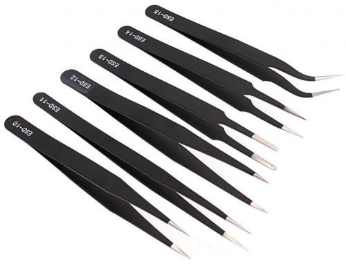 Sada antistatických nerezových pinziet, 6-dielna sada.