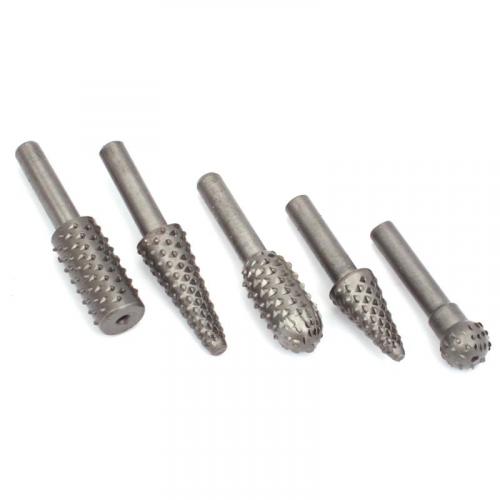 Sada brúsnych teliesok-rašplí na stopke, 5-dielna. Stopka 6,3 mm.