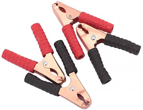 Svorky prepojovacích káblov. Predáva sa v sade 4 kusov. 2 červená, 2 čierna. Svorky vyrobené z medi, rukoväť vyrobená z izolačnej gumy. Dĺžka svorky: 13,5 cm, dĺžka rukoväte (izolácia): 6 cm.