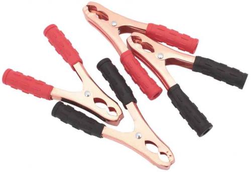 Svorky prepojovacích káblov. Predáva sa v sade 4 kusov. 2 červená, 2 čierna. Svorky vyrobené z medi, rukoväť vyrobená z izolačnej gumy. Dĺžka svorky: 16 cm, dĺžka rukoväte (izolácia): 8 cm.