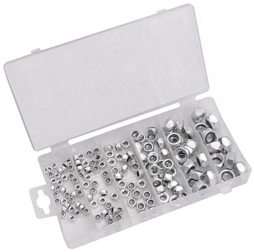 Sada 146 kusov metrických matíc s ochranou proti samovoľnému uvoľneniu. Sada obsahuje veľkosti: M4, M5, M6, M8, M10, M12.