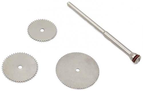Pre mini brúsky a vŕtačky. Čepele z pružinovej ocele určené na rezanie: kovov, dreva, plastov. Priemer kotúča: 16 mm, 19 mm, 22 mm, hrúbka kotúča: 0,1 mm, priemer vretena: 2,35 mm.