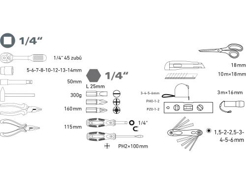 Sada náradia 47-dielna, CrV, EXTOL LADY
