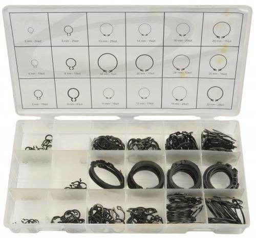 Sada 300 vonkajších krúžkov vo veľkostiach 3 - 32 mm. Vlastnosti výrobku: 18 rôznych veľkostí plastová nádoba s praktickými priehradkami Obsah súpravy: 3 mm - 20 kusov 4 mm - 10 kusov 5 mm - 15 kusov 6 mm - 25 kusov 8 mm - 15 kusov 9 mm - 20 kusov 11 mm - 15 kusov 12 mm - 15 kusov 13 mm - 25 kusov 14 mm - 15 kusov 16 mm - 20 kusov 19 mm - 25 kusov 20 mm - 15 kusov 22 mm - 20 kusov 25 mm - 15 kusov 26 mm - 15 kusov 28 mm - 10 kusov 32 mm - 5 kusov