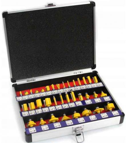 Sada 35 fréz na drevo na presné spracovanie materiálu. Vysokorýchlostné oceľové nože HSS umožňujú použitie nožov na spracovanie masívneho dreva, drevotriesky, MDF a ďalších materiálov na báze dreva. Použité ložiská znižujú valivý odpor, a preto sú frézy ideálne na tvarovanie guľatých materiálov. Celá sada je umiestnená do praktického hliníkového kufra, kde má každý nôž vlastné podpísané miesto.