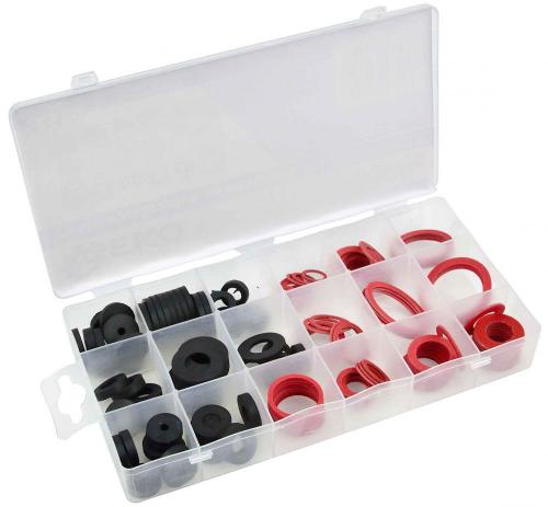 Sada sanitárnych tesnení, gumove tesnenia, vláknové tesnenia a klingeritové tesnenia. Sada obsahuje 141 kusov tesnení v 18 rôznych veľkostiach. Obsah súpravy: Gumové tesnenia: 5 x 3/8 "- 8,0 x 18,0 x 4,0 mm 5 x 3/8 "- 10,5 x 14,0 x 4,0 mm 10 x 1/2 "- 4,0 x 16,0 x 4,0 mm 10 x 1/2 "- 4,0 x 17,0 x 4,0 mm 5 x 1/2 "- 8,0 x 14,0 x 4,0 mm 10 x 1/2 "- 8,0 x 18,0 x 4,0 mm 10 x 3/4 "- 12,0 x 24,0 x 2,0 mm 5 x 3/4 "- 15,0 x 24,0 x 3,0 mm Vláknové tesnenia: 10 x 3/8 "- 10,0 x 13,5 x 2,0 mm 10 x 3/8 "- 12,0 x 17,5 x 1,5 mm 10 x 1/2 "- 17,0 x 21,0 x 1,5 mm 10 x 1/2 "- 17,0 x 24,0 x 1,5 mm 10 x 3/4 "- 20,5 x 25,0 x 1,5 mm 5 x 1 "- 27,0 x 33,0 x 1,5 mm Klingeritové tesnenie: 10 x 1/2 "- 12,0 x 17,5 x 1,0 mm 10 x 3/4 "- 17,0 x 24,0 x 2,0 mm 3 x 1i1 / 4 "- 30,0 x 39,0 x 1,0 mm 3 x 1i1 / 2 "- 27,0 x 38,0 x 2,0 mm