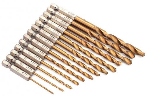 Sada 13ks HSS vrtákov so 6-hrannou 1/4" stopkou. Zahrnuté vrtáky: 1,5-2-2,5-3-3,2-3,5-4-4,5-4,8-5-5,5-6-6,5 mm. Vrtáky sú určené na vŕtanie do kovu, dreva a plastov.