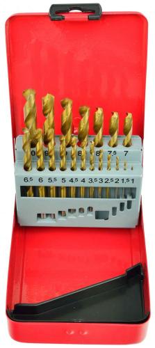 Sada vrtákov do kovu v praktickej plechovej krabičke. Vrtáky majú titánový povrch. Sada obsahuje 19 kusov vrtákov v rozmeroch: 1 / 1,5 / 2 / 2,5 / 3 / 3,5 / 4 / 4,5 / 5 / 5,5 / 6 / 6,5 / 7 / 7,5 / 8 / 8,5 / 9 / 9,5 / 10 mm.