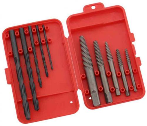Sada na vyťahovanie zalomených skrutiek. Sada obsahuje 5x vrtáky a 5x vyťahovače (3-6, 6-8, 8-11, 11-14, 14-18 mm).