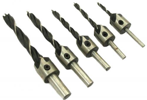 Sada záhlbnikov do dreva s vrtákmi 4,5,6,8,10 mm, upínanie valcová stopka, XL-TOOLS