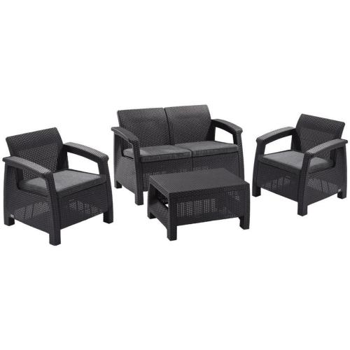 Set terasový Allibert CORFU, graphite/coolgray, stôl, pohovka, 2x stolička