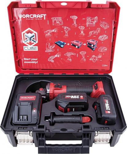 Set Worcraft XCUBE003 Toolbox, brúska 125mm, 2x 4.0 Ah akumulátor, 1x nabíjačka, uhlová