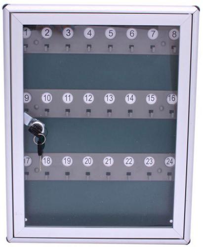Hliníková skrinka pre 24 kľúčov. Rozmery 40 x 295 x 370 mm.