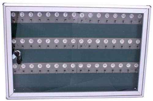 Hliníková skrinka pre 48 kľúčov. Rozmery 40 x 555 x 375 mm.