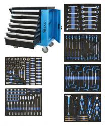 Popis : 6 zásuviek s náplňami 1 veľká zásuvka ideálna pre veľké nástroje a príslušenstvo Výsuvné zásuvky na vedeniach s guličkovými ložiskami uzamknuté kľúčom Oceľová konštrukcia práškovej farby 4 kolesá z ktorých dve sú vybavené zámkom Šírka Hĺbka Výška Rozmery 770 mm 460 mm 725 mm Rozmery s rukoväťou a kolieskami 840 mm 460 mm 875 mm Rozmer 6 zásuviek 530 mm 390 mm 55 mm Rozmer 1 zásuvka 530 mm 390 mm 135 mm Rozmery penových vložiek 520 mm 385 mm 36 mm Rozmery vnútornej bočnej police 360 ??mm 80 mm 48 mm Skrine Zásuvka č 1 1/2 "Štandardné šesťhranné hlavice (dĺžka = 36 mm): 8, 9, 10, 11, 12, 13, 14, 15, 17, 19, 20, 21, 22, 24, 27, 30, 32 mm 3/8 "Štandardné šesťhranné hlavice (dĺžka = 26 mm): 6, 8, 10, 11, 12, 13, 14, 15, 17, 19 mm 1/4 "štandardné šesťhranné hlavice (dĺžka = 20 mm): 4, 4,5, 5, 5,5, 6, 7, 8, 9, 10, 11, 12, 13, 14 mm 1/4 "dlhé šesťhranné hlavice (dĺžka = 48 mm): 5, 6, 7, 8, 9, 10, 11, 12, 13, 14 mm 3/8 "šesťhranné hlavice (dĺžka = 65 mm): 6, 8, 9, 10, 11, 12, 13, 14, 15, 17, 19 mm 1/2 "Dlhé šesťhranné hlavice (dĺžka = 77 mm): 10, 11, 13, 14, 15, 17, 19, 22, 24 mm 1/4 " Predlžovací nadstavec (100 mm) 1/2 " Predlžovací nadstavec(125 mm) 3/8 "Predlžovací nadstavec (150 mm) Kardanový kĺb 1/4 " Kardanový kĺb 3/8 " 1/2 "kardanový kĺb 1/4 " Račňa - mechanizmus 72 zubov 3/8 " Račňa - mechanizmus 72 zubov 1/2 " Račňa" - mechanizmus 72 zubov Zásuvka č 2 3/8 "držiak bitov (dĺžka = 31 mm) Bity 1/4 "s uzáverom (dĺžka = 37mm) HEX: H3, H4, H5, H6, H7, H8 XZN: M8, M10, M12 Philips: PH0, PH1, PH2, PH3 Pozidrive: PZ0, PZ1, PZ2, PZ3 Bit: 4, 5,5, 6,5, 7 mm T-hviezda: T8, T9, T10, T15, T20, T25, T27, T30, T40 TS-Star: TS10, TS15, TS20, TS25, TS27, TS30, TS40, TS45, TS50 Služba T-Star: T8, T9, T10, T15, T20, T25, T27, T30, T40 1/2 "Bity s uzávermi HEX: H5x160mm, H7x230mm, H10x140mm, H11x140mm, H13x140mm, H14x55mm, H17x55mm, H19x55mm, H22x55mm, H24x55mm XZN: M9x100mm, M10x140mm, M12x140mm, M14x140mm, M16x100mm XZN s otvorom: M16x55mm XZN s otvorom: M18x78mm T-hviezda: T30x300mm, T40x140mm, T45x140mm, T50x140mm, T55x140mm, T60x140mm, T70x140mm, T80x100mm Ribe: R7x240mm, R8x240mm, R9x100mm, R10x140mm Zásuvka č Súprava obsahuje kľúče veľkostí: 8, 9, 10, 11, 12, 13, 14, 15, 16, 17, 19, 20, 21, 22 mm Zásuvka č 3 Skrutkovače Ploché: 6x38, 5x75, 6x100, 8x150mm Philips: PH2x38, PH1x75mm, PH2x100mm, PH3x150mm Torx: T6x75, T7x75, T8x75, T9x75, T10x75, T15x100, T20x100, T25x100, T27x100, T30x100, T40x150mm Presné skrutkovače Plochý 3x100mm Philips PH0x100mm Zásuvka č 4 Kľúč Torx typu T T10x75, T15x100, T20x100, T25x150, T27x150, T30x150, T40x150, T45x200, T50x200mm Kľúč T typu HEX H2x100, H2.5x100, H3x100, H4x150, H5x150, H6x150, H7x150, H8x200, H10x200mm Zásuvka č 5 Kladivo 225g 10 "nastaviteľné kliešte 6 "kliešte Dlhé 6 "kliešte 6 "kliešte 6 "nožnice Vonkajšie kliešte 90 ° ohnuté 6 " Vnútorné kliešte 90 ° ohnuté 6 " Vonkajšie rovné kliešte 6 " Vnútorné rovné kliešte 6 " Razník 3x150mm 8-bodový držiak Valčekový dierovač 4x150mm 8-bodový držiak Držiak valca 5x150mm 8-bodový držiak Cylindrický razník, 6x150mm, 8-bodová rukoväť Cylindrický dierovač 8x150mm 8-bodový držiak Dierovačka 10x150mm 8-bodový držiak