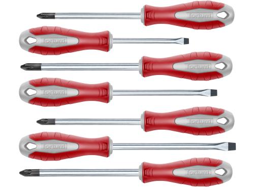 ergonomicky tvarovaná rukoväť z tvrdého PP plastu, na povrchu mäkčená kvalitnou protisklzovou TPR gumou, pre zvýšenie krútiacej sily skrutkovača