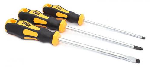 Profesionálny skrutkovač PH 1 x 100 mm na zavesenie. Ergonomická dvojzložková rukoväť potiahnutá gumou poskytuje pevné uchopenie a poskytuje pohodlie pri práci. Hrot vyrobený z vysoko kvalitnej ocele S2. Skrutkovací vrták tvrdený, silne magnetizovaný.