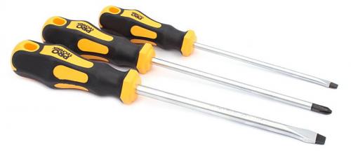 Profesionálny skrutkovač PZ 1 x 100 mm na zavesenie. Ergonomická dvojzložková rukoväť potiahnutá gumou poskytuje pevné uchopenie a poskytuje pohodlie pri práci. Hrot vyrobený z vysoko kvalitnej ocele S2. Skrutkovací vrták tvrdený, silne magnetizovaný.