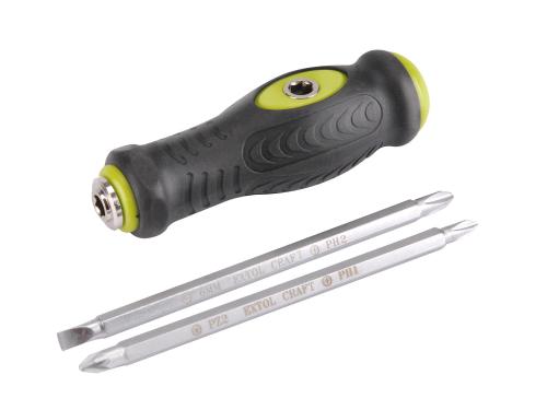 Skrutkovač T, 2 obojstranné bity, plochý 6mm, PH1-2, PZ2