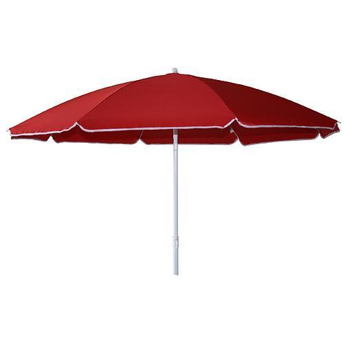 Slnečník je vďaka polyesterovému pokrytiu vrchnej časti odolný voči silnému slnku, čo využijete najmä v letných dňoch. Je červenej farby s bielym lemom a s priemerom až 200 cm. Výška stredovej tyče slnečníka je 200 cm a jej priemer je 22/25 mm. Vrchná časť je spevnená rebrami s priemerom 3 mm a celá konštrukcia je vyrobená z pevnej ocele, poskytujúca dostatočnú stabilitu. Slnečník navyše poskytuje možnosť oceľového náklonu podľa potreby. Hmostnosť jedného slnečníka je 1,36 kg.