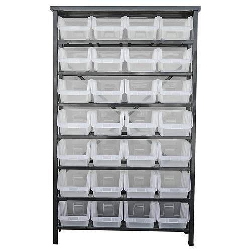 Stojan s plastovými boxami HL3205, 28 zásobníkov, 94x30x150 cm