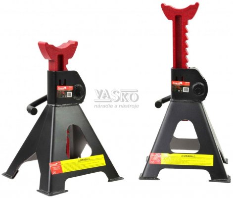 Sada profesionálnych stojanov na automobily s nosnosťou 3 tony. Pevne stojany vyrobené z hrubého oceľového plechu potiahnutého práškovým nástrekom. Račňový mechanizmus umožňuje presné nastavenie výšky na niekoľkých úrovniach. Sada sa používa na podopretie automobilov a iných zariadení potom, čo boli zdvihnuté pomocou zdviháka. Stojany uľahčujú prácu v dielni či garáži pri výmene kolies a iných opravách automobilov.