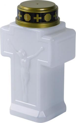 Sviečka MagicHome, kríž, LED, na hrob, biela, 2xAA, 15x9 cm, (súčasť balenia 2xAA)