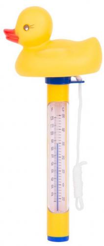 Plávajúci teplomer s kačičkou obzvláštni každý bazén a presne pomerá teplotu vody. Pripevňuje sa pomocou pásika k bazénu, aby ostal na mieste. Teplomer zobrazuje hodnoty v stupňoch Celsia aj Fahrenheita.