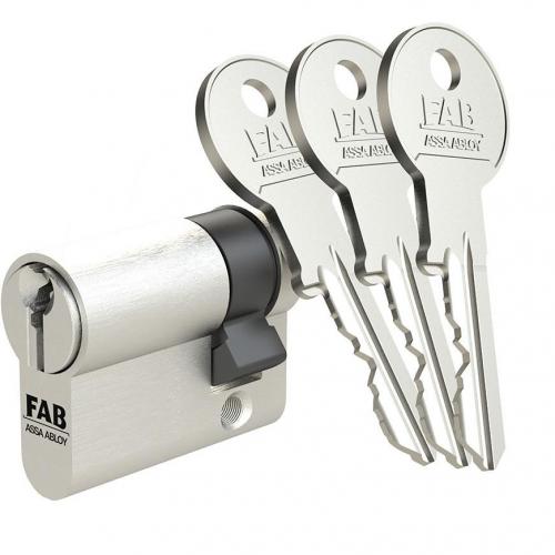 Cylindrická vložka FAB je určená na dočasné uzavretie napr. počas stavby a pre objekty vyžadujúce základnú úroveň zabezpečenia. Obsahuje 5 stavítkový uzamykací systém. Povrchová úprava matný nikel. Štandardne dodávané s 3 oceľovými kľúčmi. Rozmer: 30+30 mm.