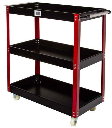 Oceľový vozík s tromi policami. Je ideálny pre dielne a služby a je tiež dobrým riešením pre domácich majstrov. Uľahčuje to prácu, pretože každý nástroj máte vždy po ruke. Je vybavená štyrmi kolesami, dvoma pevnými a dvoma otočnými, a kovovou rukoväťou, ktorá uľahčuje premiestňovanie. Vozík je možné použiť aj na prepravu malých balíkov.