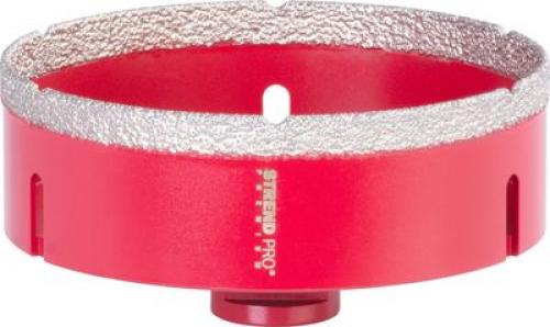 Vyrezávač Strend Pro Premium je vhodný na vyrezávanie keramických dlaždíc, granitu, mramoru, gresu, porcelánu a žuly. Špičkový proces spájania diamantov zabezpečuje vysokú odolnosť voči vysokým teplotám a predlžuje životnosť. Extrémne ľahké rezanie a vysoká výkonnosť pri vykružovaní. Je použiteľný s akoukoľvek vŕtačkou s použitím vhodného adaptéru. Typ upínania: M14, Ø vyrezávača je 125 mm.
