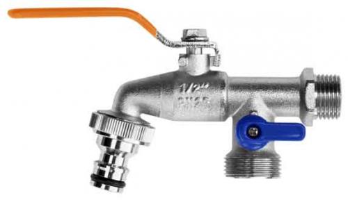 Záhradný vodovodný kohútik 3/4" - 2x 1“ s rýchlospojkou, poniklovaná mosadz, BRADAS