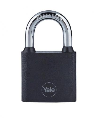 Visiaci zámok Yale so šírkou 38 mm so štandardnou úrovňou zabezpečenia. Železná konštrukcia disponuje tvrdeným strmeňom, ktorý zabraňuje prerezaniu. Odolný zámok testovaný na 10 000 cyklov (otvorenie a zatvorenie) pre optimálny výkon. Balenie obsahuje 3 ks kľúčov.