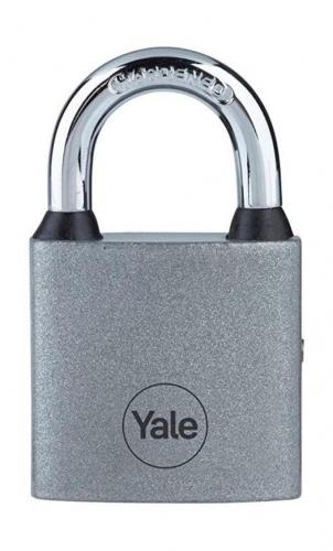 Visiaci zámok Yale so šírkou 38 mm so štandardnou úrovňou zabezpečenia. Železná konštrukcia disponuje tvrdeným strmeňom, ktorý zabraňuje prerezaniu. Odolný zámok testovaný na 10 000 cyklov (otvorenie a zatvorenie) pre optimálny výkon. Balenie obsahuje 3 ks kľúčov.