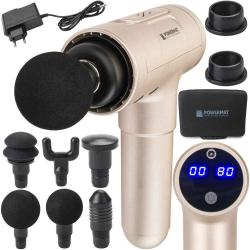 Vibračná masážna pištoľ + 6 hláv, 1 800 mAh, farba zlatá, PM-MAS-1800GM, POWERMAT