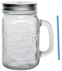 Pohár MagicHome, so slamkou, s viečkom, sklo, 480 ml