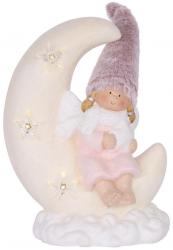 Dekorácia MagicHome Vianoce, Dievčatko sediac na mesiačiku, 3 LED, keramika, 26,50x16x35 cm