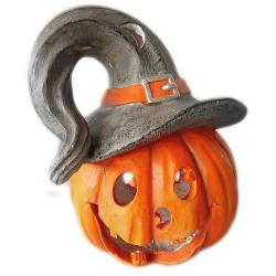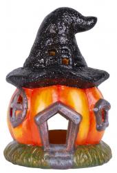 Dekorácia MagicHome Nature, Lampášik tekvica LED, s klobúkom, keramika, 15 cm