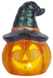 Dekorácia MagicHome Nature, Lampášik tekvica LED, s čarodejníkom, keramika, 15 cm