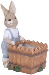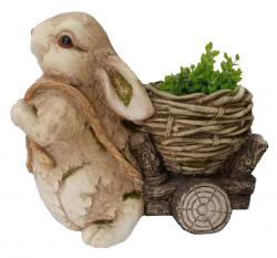 Dekoracia Gecco 1009, Zajac s kvetináčom, magnesia, 36x19x42 cm