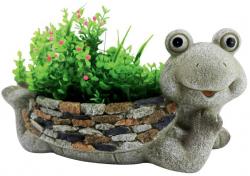 Dekoracia Gecco 4004, Žaba s kvetináčom, magnesia, 35x16x17 cm